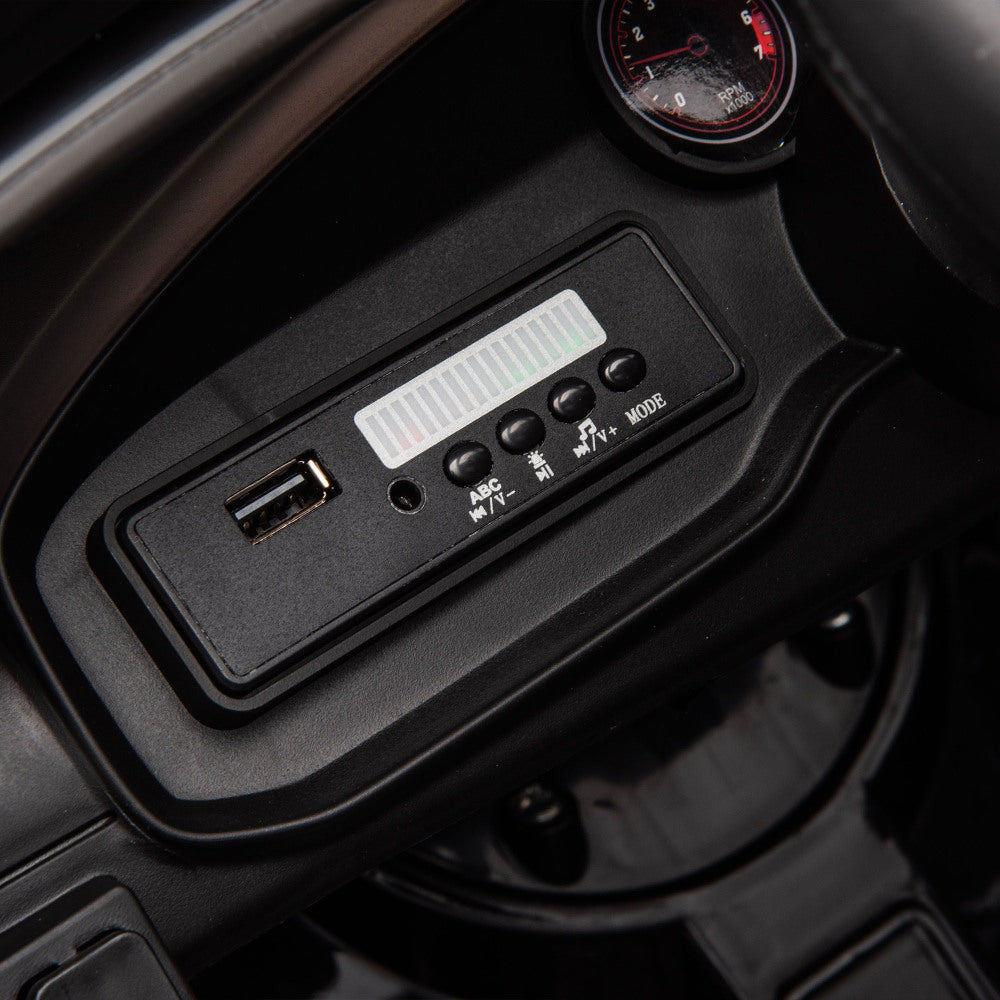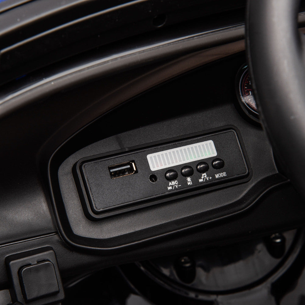 Electron assisted steering wheel Forward and backward,megaphone ,Bumper bar ,RC.Three speed adjustable Power display,slow start,USB,MP3,Bluetooth LED light,Four wheel suspension Two-point safety belt,Two open door, Parent Control